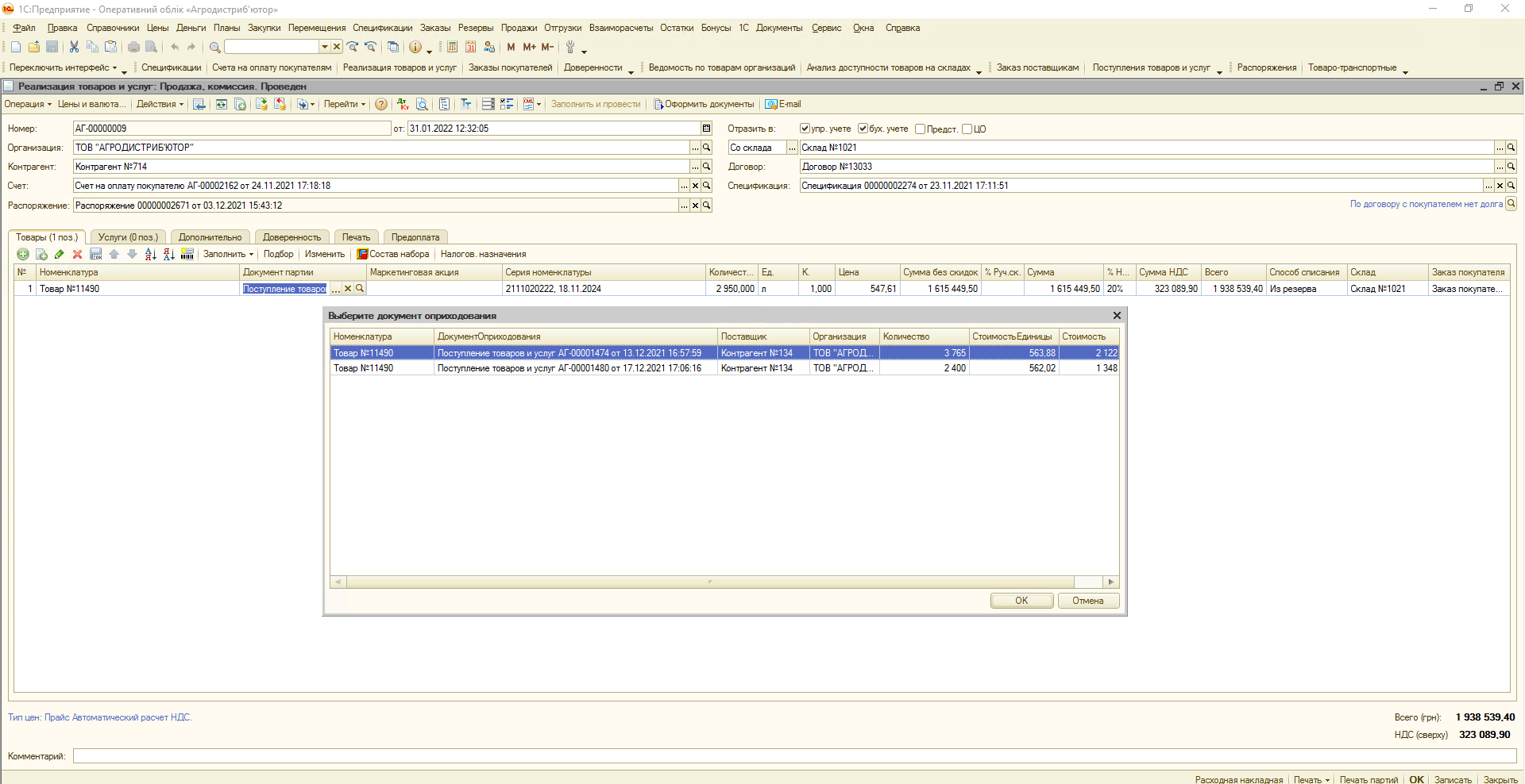 Для цього можна вибрати партію списання (прибуткову накладну) в видатковій накладній.
