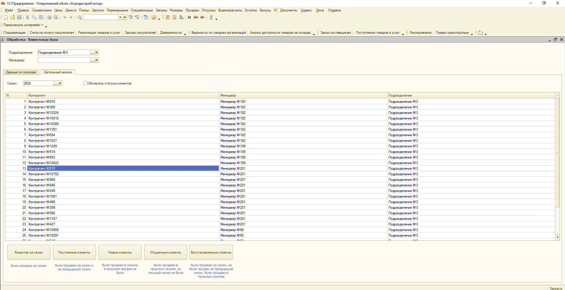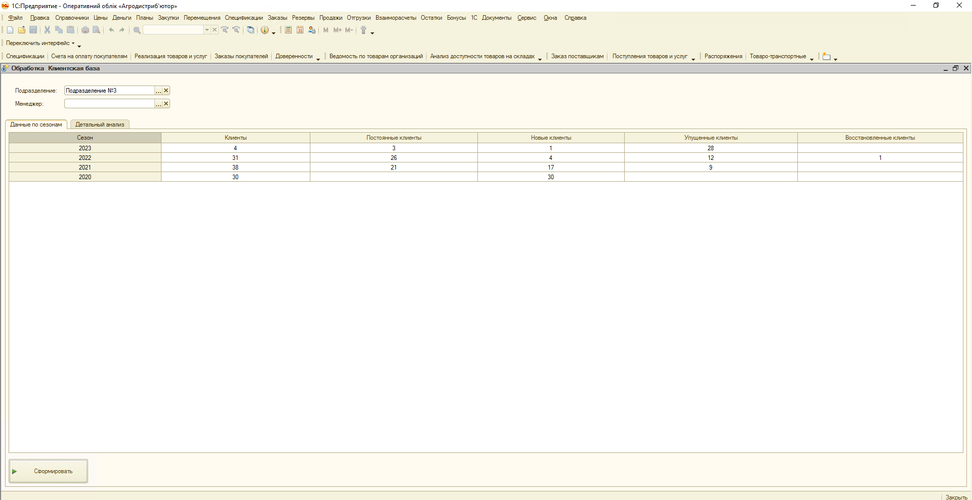 Аналіз клієнтської бази по менеджерах, сезонах