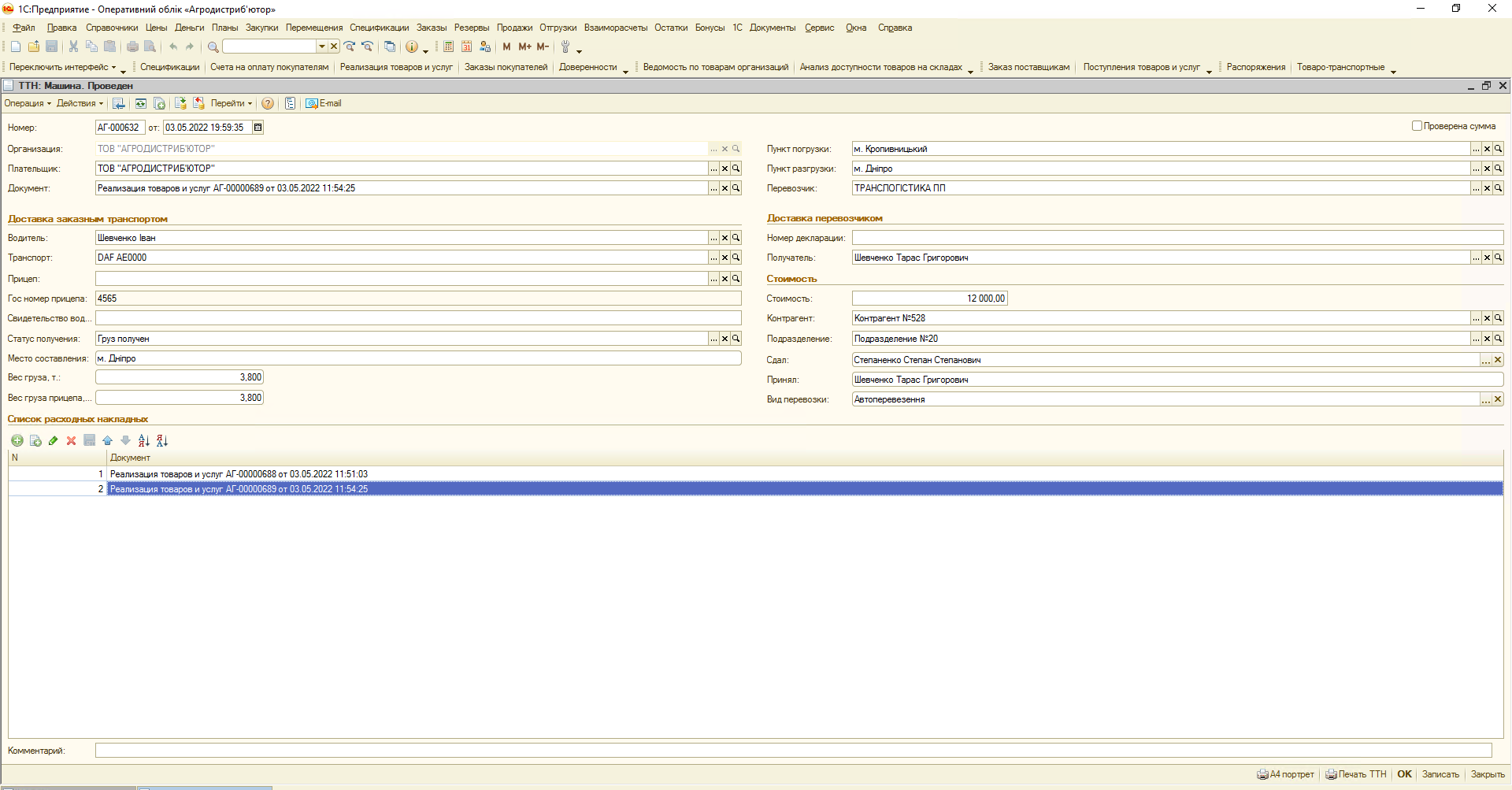 Окремий документ ТТН збережений в системі значно спрощує процес обліку ТТН, гарантує коректну нумерацію, зберігає необхідню інформацію, дає можливість швидко роздрукувати документ в разі необхідності, спрощує облік оригіналів ТТН.