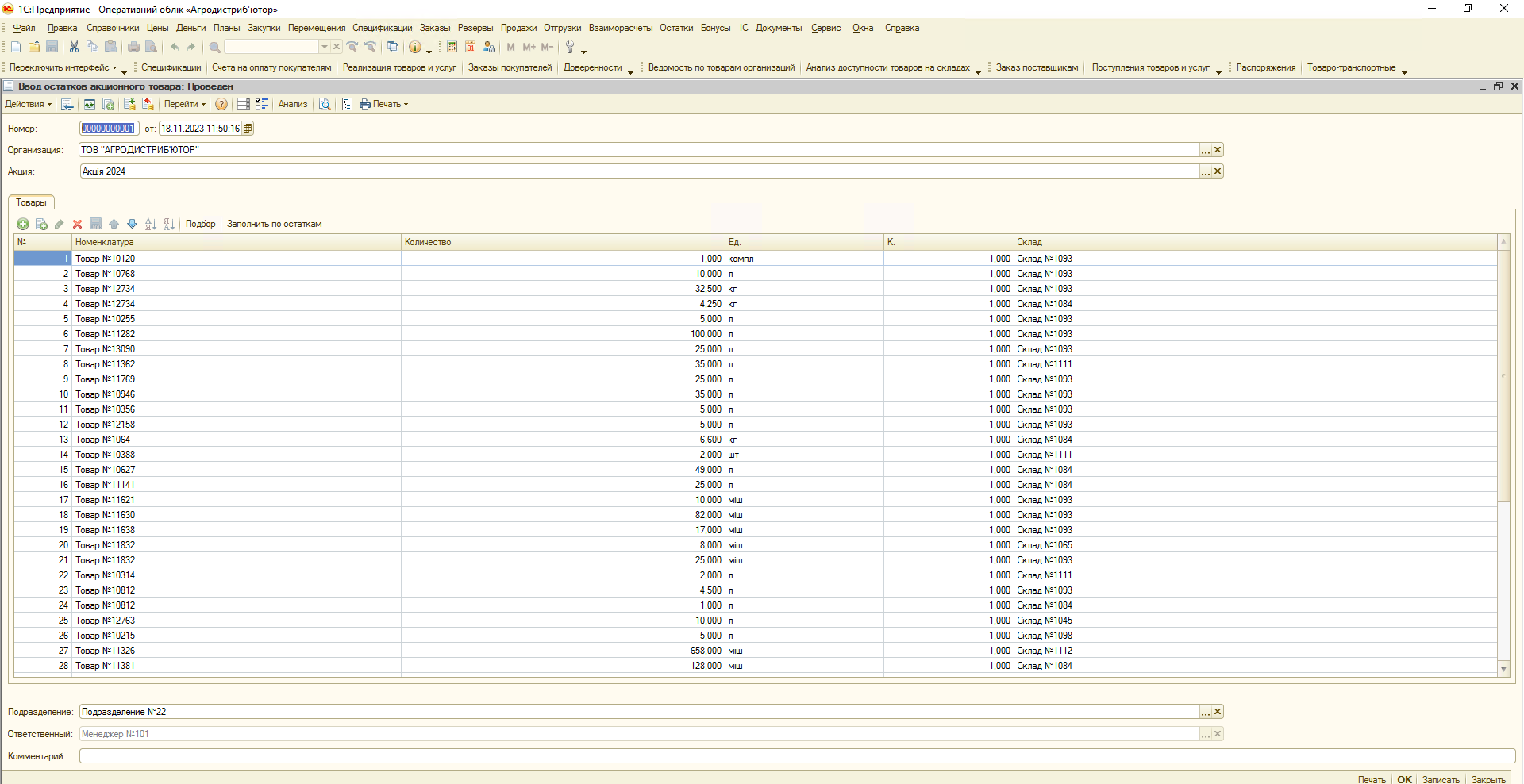 Щоб контролювати залишок товару по акції необхідно ввести його кількості. А при виписці видаткової накладної неодхідно в полі "Маркетингові акції" вибрати потрібну, щоб відбулося списання товару із акційних залишків.
