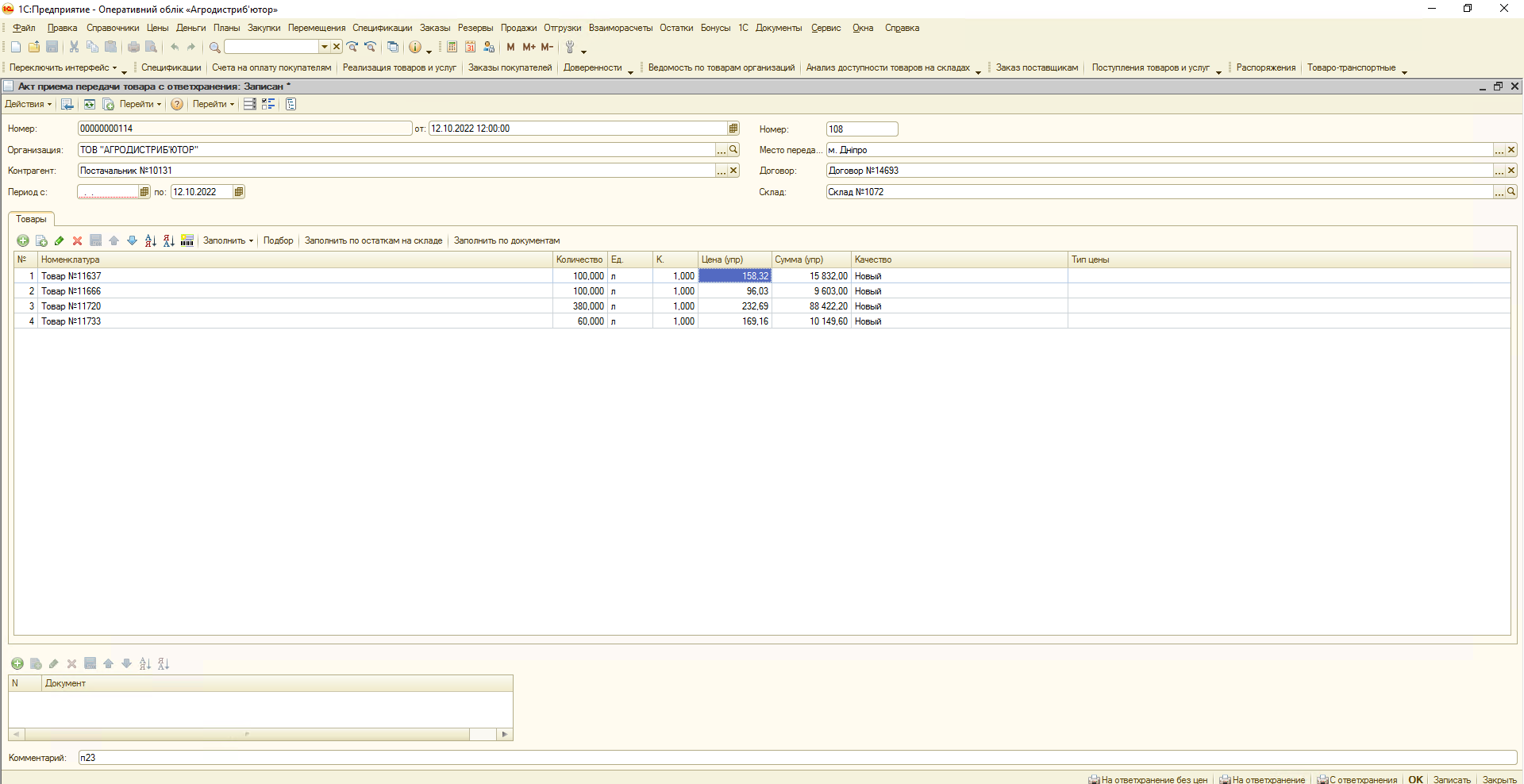 Підбір товарів в акт може здійснюватися на основі залишків на складі, а також по документах прийому-видачі.