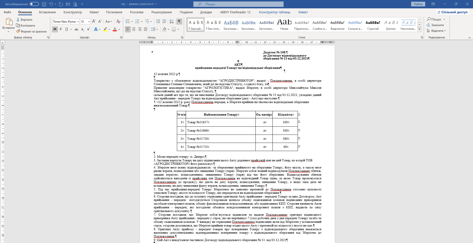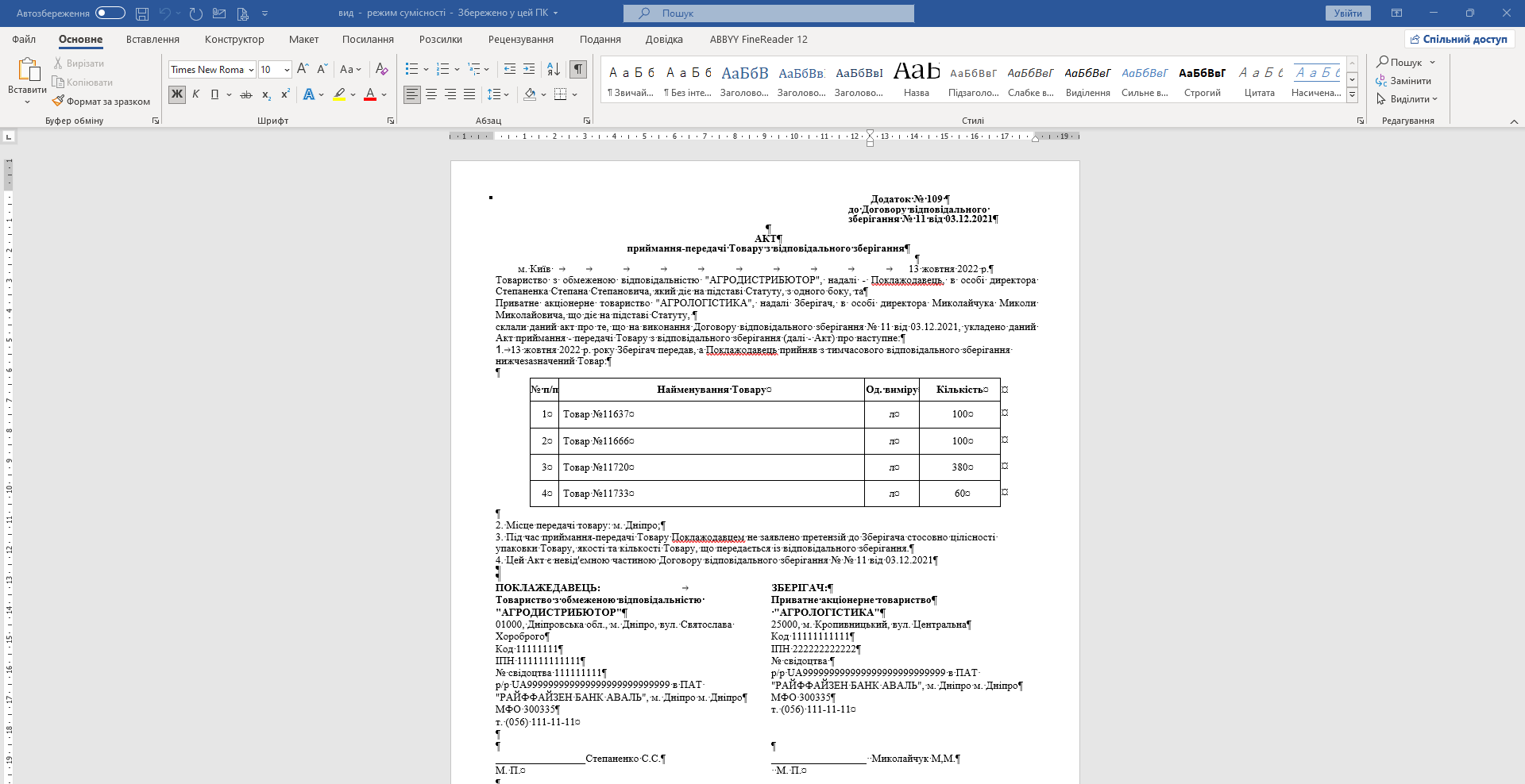 Друковані форми актів прийому-передачі можуть бути змінені під Ваші вимоги.