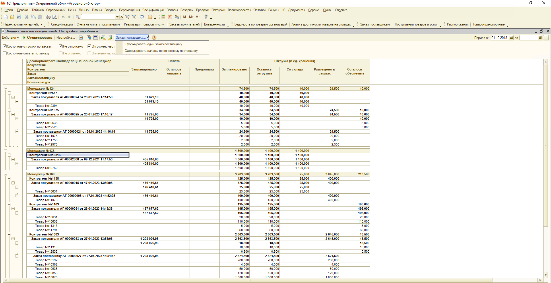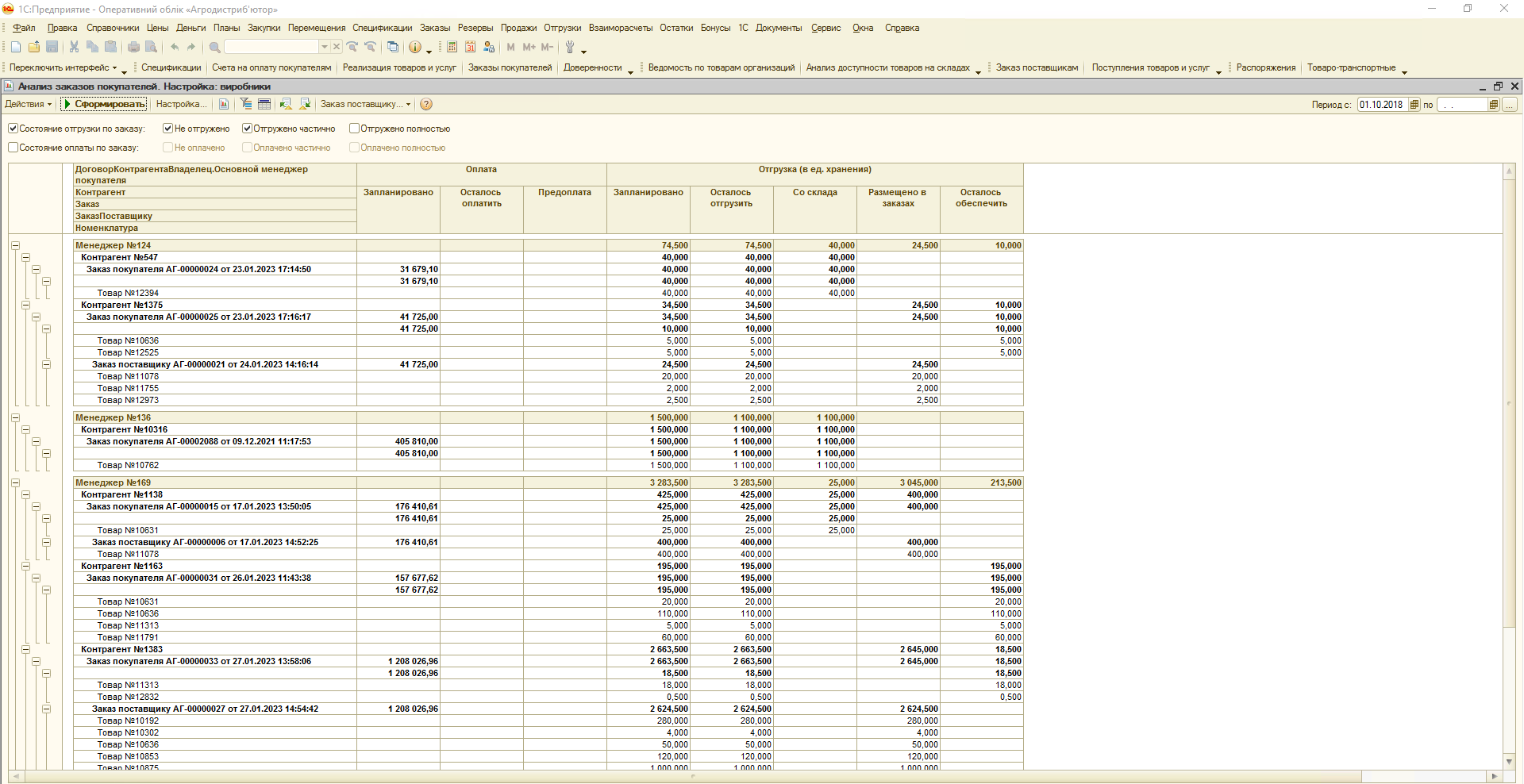 Звіт «Аналіз замовлень покупців» дозволяє отримати інформацію про поточний стан оплачених та заброньованих товарів. Поруч із замовленнями покупця можна вивести пов'язані «Замовлення постачальникам».