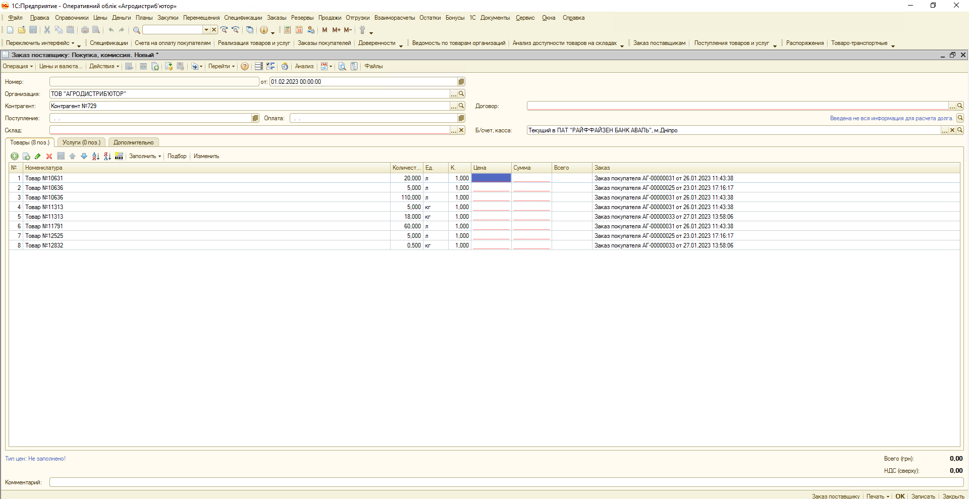 У результаті отримуємо замовлення постачальнику з автоматично доданими замовленнями покупців.