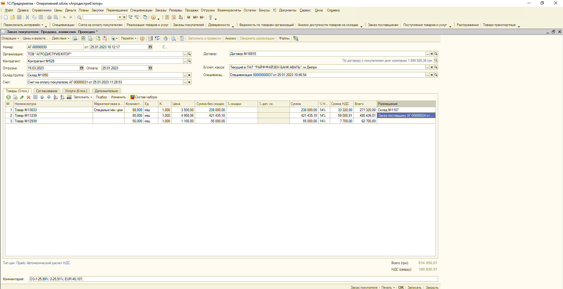 Якщо виписане замовлення покупця, це означає що всі фінансові умови по договору виконані (зайшли гроші або прописана відстрочка в специфікації) і вже прийнято рішення про відвантаження товару в майбутньому.