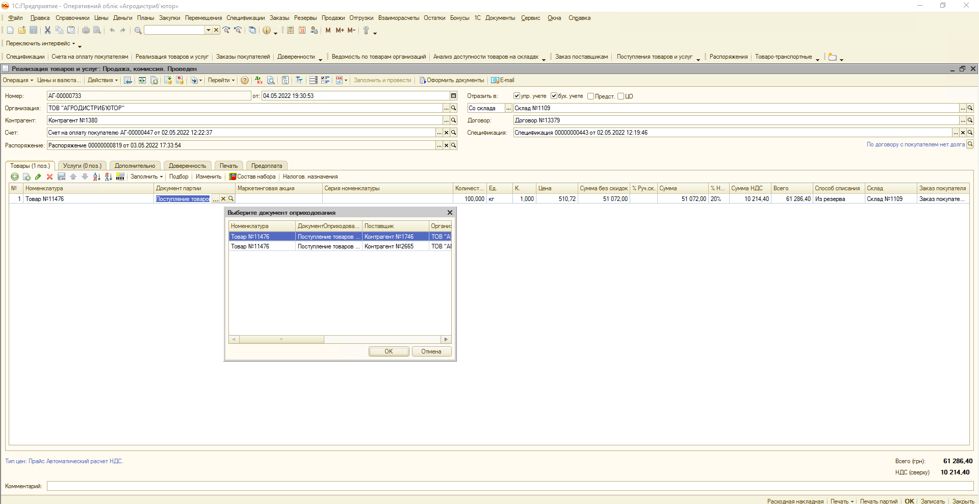 В видактовій накладній є можливість вказувати партію товару (документ Надходження товарів і послуг) з якої необхідно списати товар в партійному обліку. Це дозволяє корректно розраховувати маржинальність угод по менеджерах у випадках, коли під різні угоди один і той самий товар заходив від різних постачальників по різних цінах.