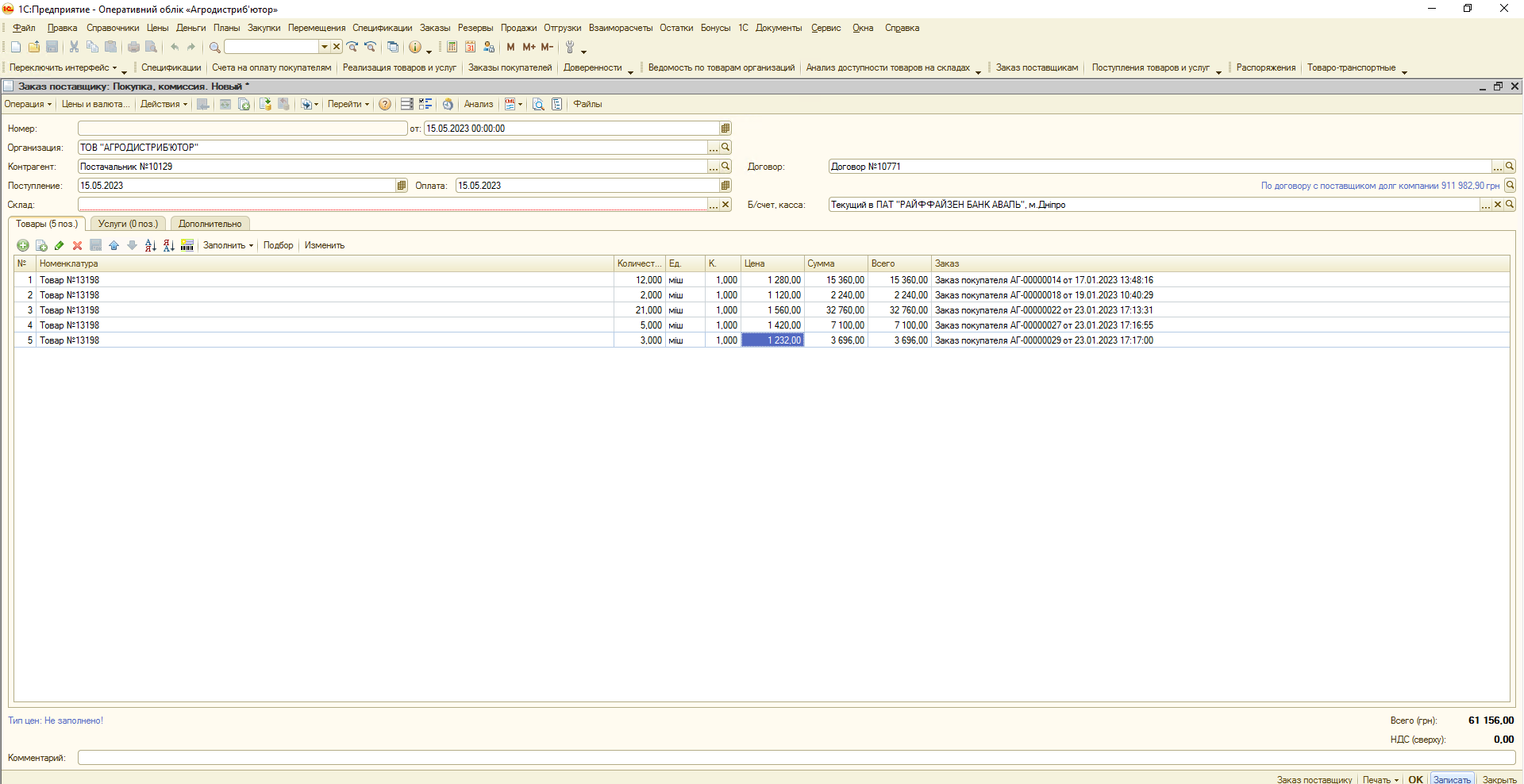 Документ «Замовлення постачальнику» використовується для фіксації події отримання рахунку від постачальника замість документу «Рахунок від постачальника»